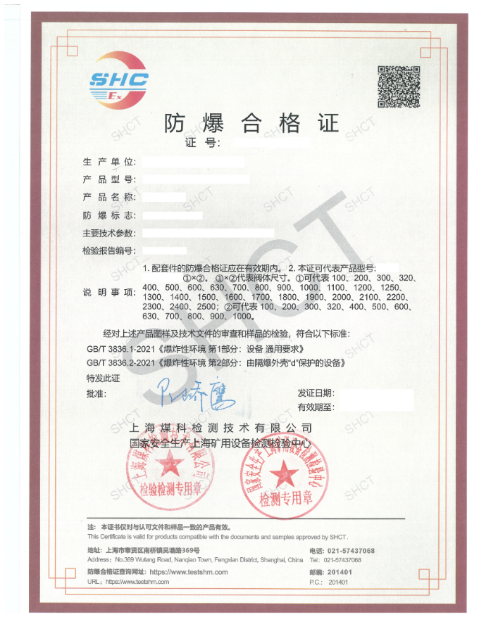 2.我司于2024年4月1日起正式啟用新版防爆合格證,新版證書增加水印并在左上角增加單位logo。公告發布網址防爆合格證改版公告。新版證書版式,見下圖。
